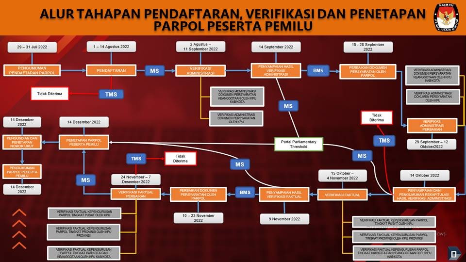 Alur Tahapan Pendaftaran,Verifikasi dan Penetapan Parpol Peserta Pemilu 2024 Jumat, 29 Juli 2022 00:00 746 Alur Tahapan Pendaftaran,Verifikasi dan Penetapan Parpol Peserta Pemilu 2024 Baca Selengkapnya