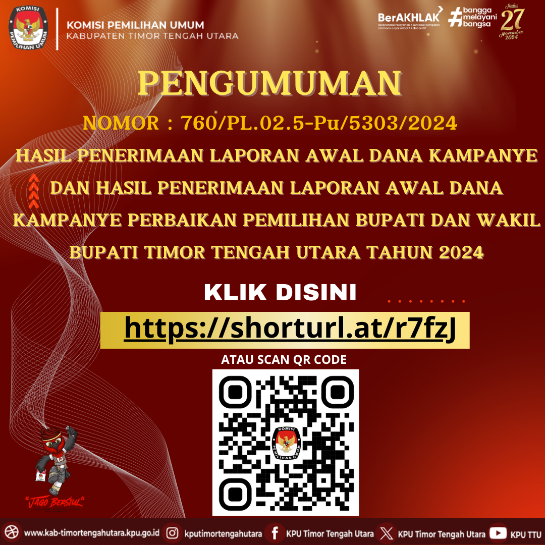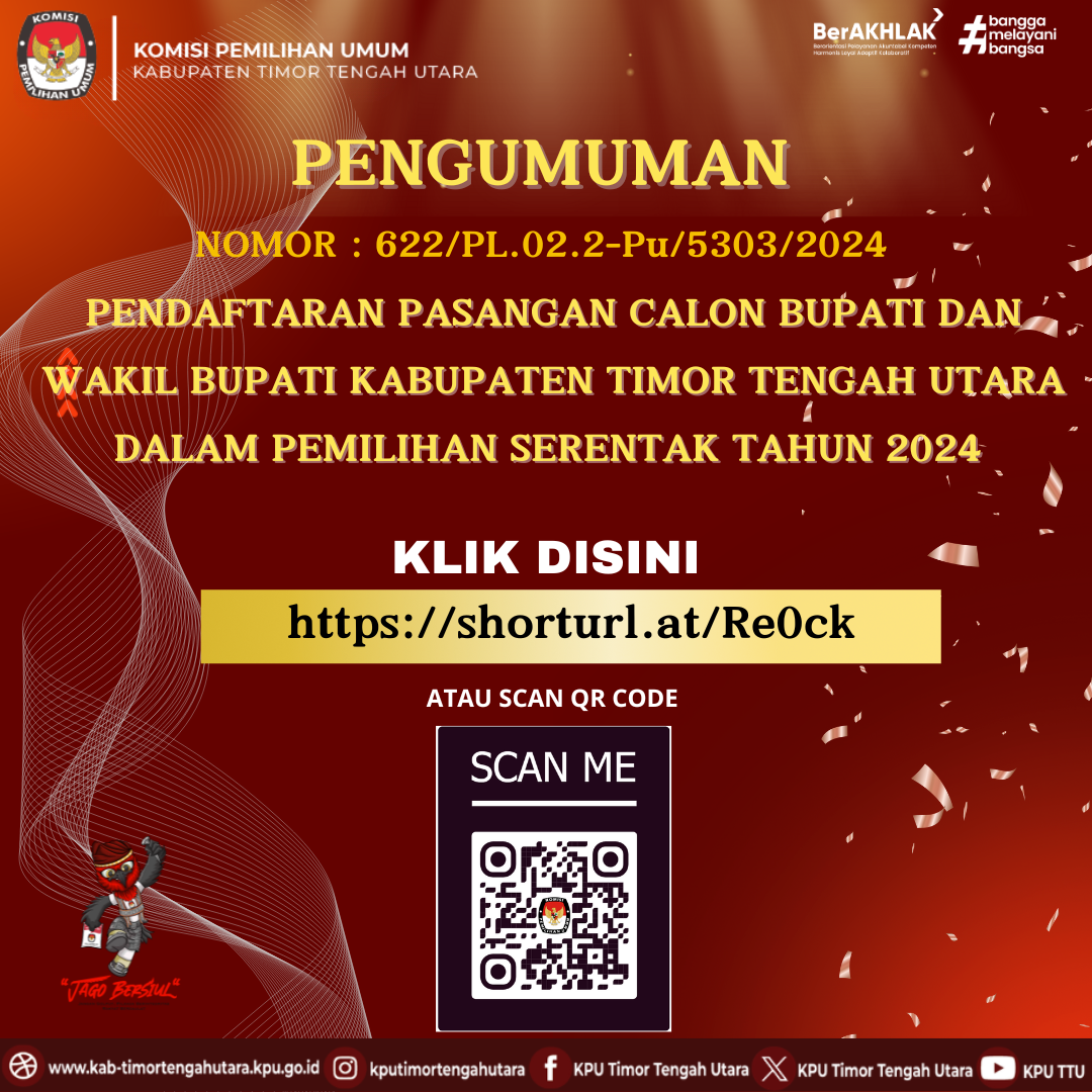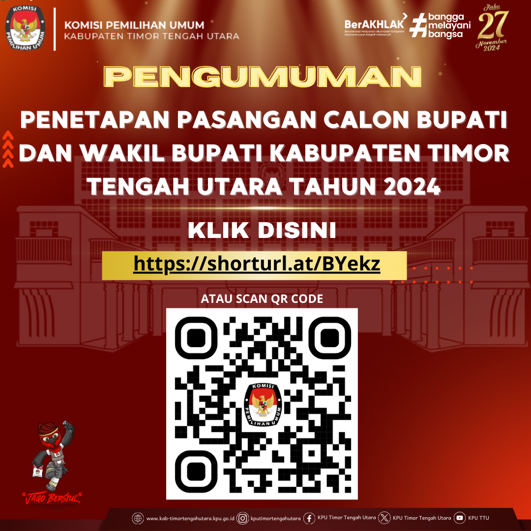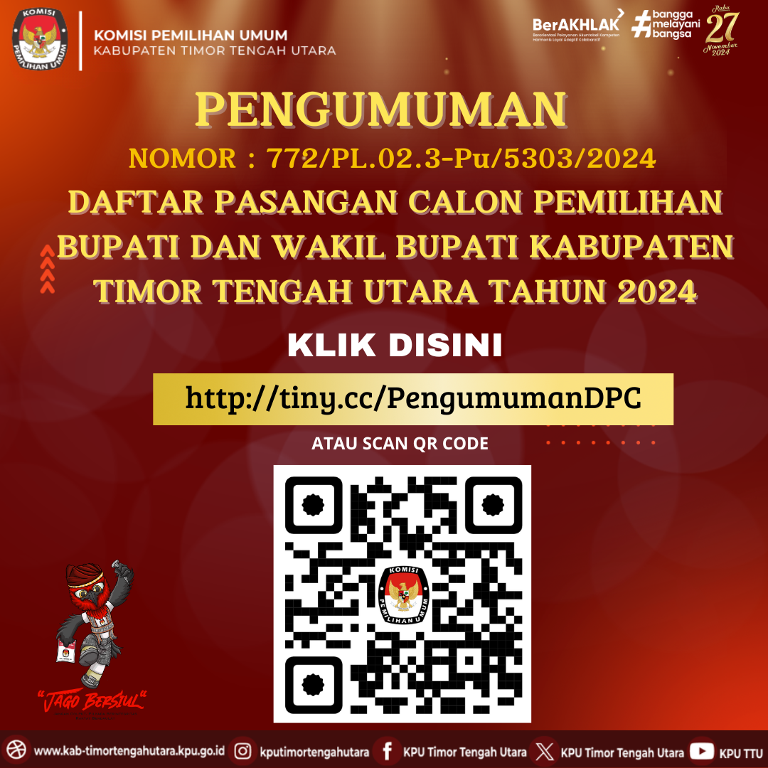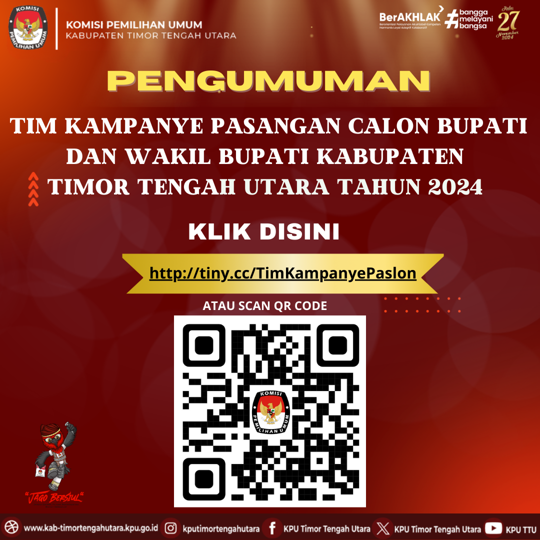 PENGUMUMAN Nomor : 766/PL.02.4-Pu/5303/2024 TENTANG NAMA TIM KAMPANYE PASANGAN CALON PESERTA PEMILIHAN BUPATI DAN WAKIL BUPATI KABUPATEN TIMOR TENGAH UTARA TAHUN 2024PENGUMUMAN Nomor : 766/PL.02.4-Pu/5303/2024 TENTANG NAMA TIM KAMPANYE PASANGAN CALON PESERTA PEMILIHAN BUPATI DAN WAKIL BUPATI KABUPATEN TIMOR TENGAH UTARA TAHUN 2024