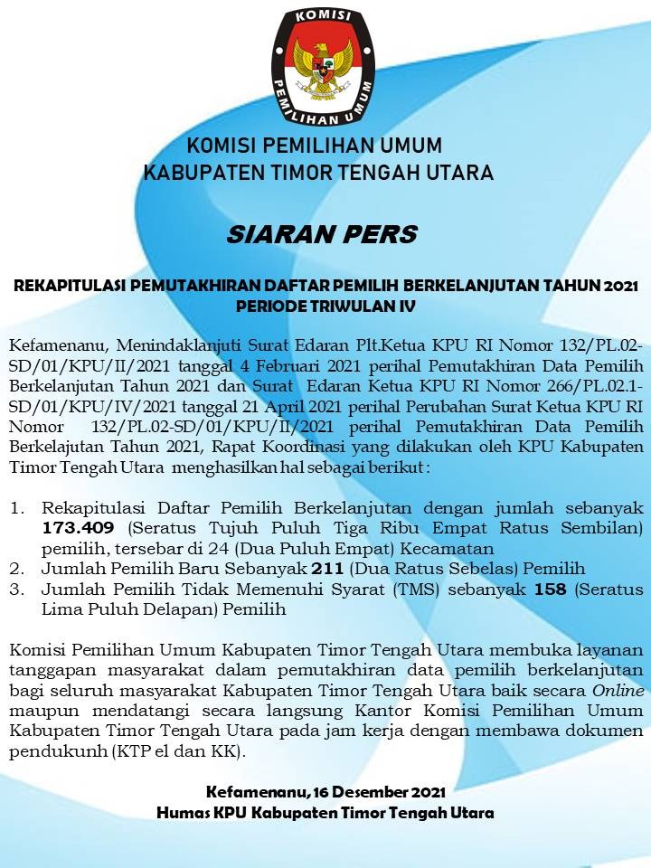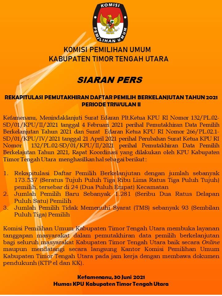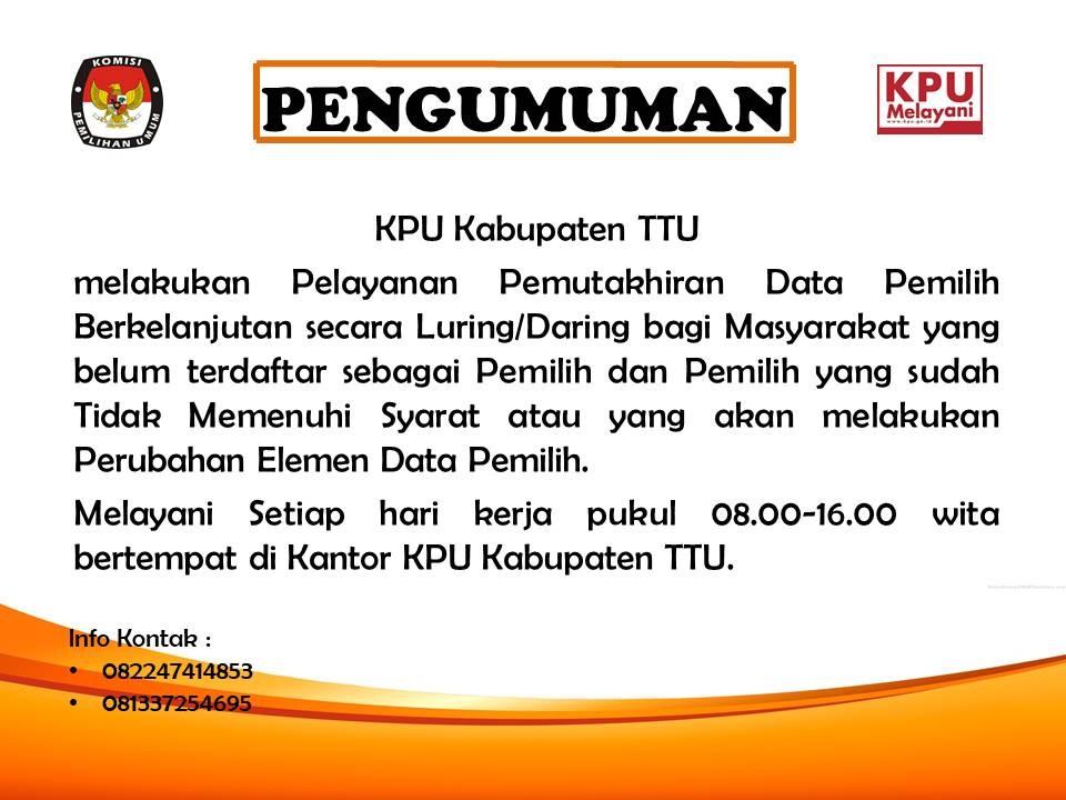Pelayanan Pemutakhiran Data Pemilih Berkelanjutan secara Daring/Luring bagi masyarakat Kabupaten Timor Tengah Utara yang belum terdaftar sebagai Pemilih
